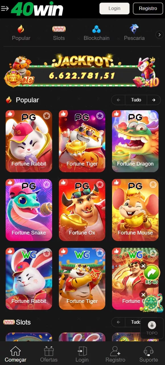 Descubra o Centro de Jogos Completo da 40 Win. A 40 Win oferece aos usuários brasileiros acesso a uma ampla variedade de esportes e cassinos. Espetáculos globais e favoritos brasileiros, as melhores odds, mercados diversificados e ação ao vivo dinâmica!